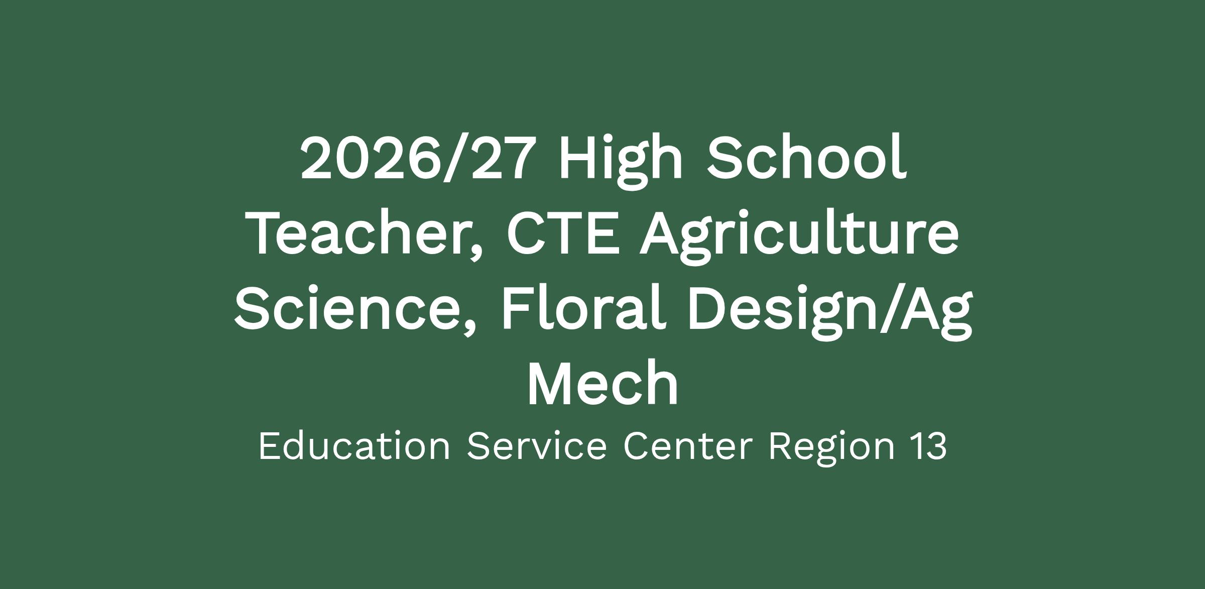 2026/27 High School Teacher, CTE Agriculture Science, Floral Design/Ag Mech