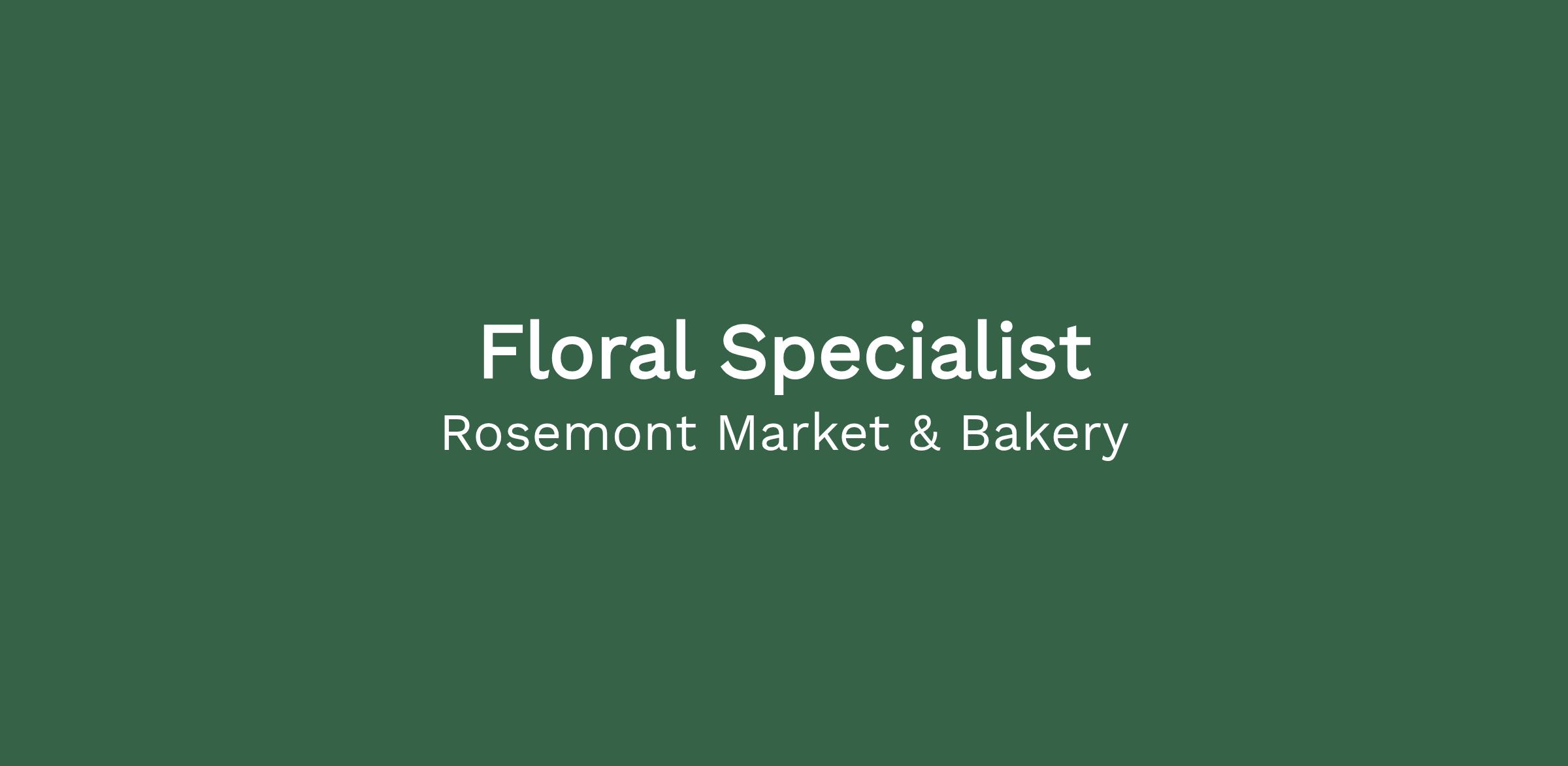 The floral specialist is responsible for the production of floral bouquets sold in Rosemont's markets. They use their specialized knowledge of flowers to create bouquets and arrangements that are consistent with Rosemont's quality and brand standards and are memorable for customers. They use a variety of flowers both locally sourced and imported, foliage, and other materials to create one-of-a-kind bouquets, centerpieces, and other floral arrangements.