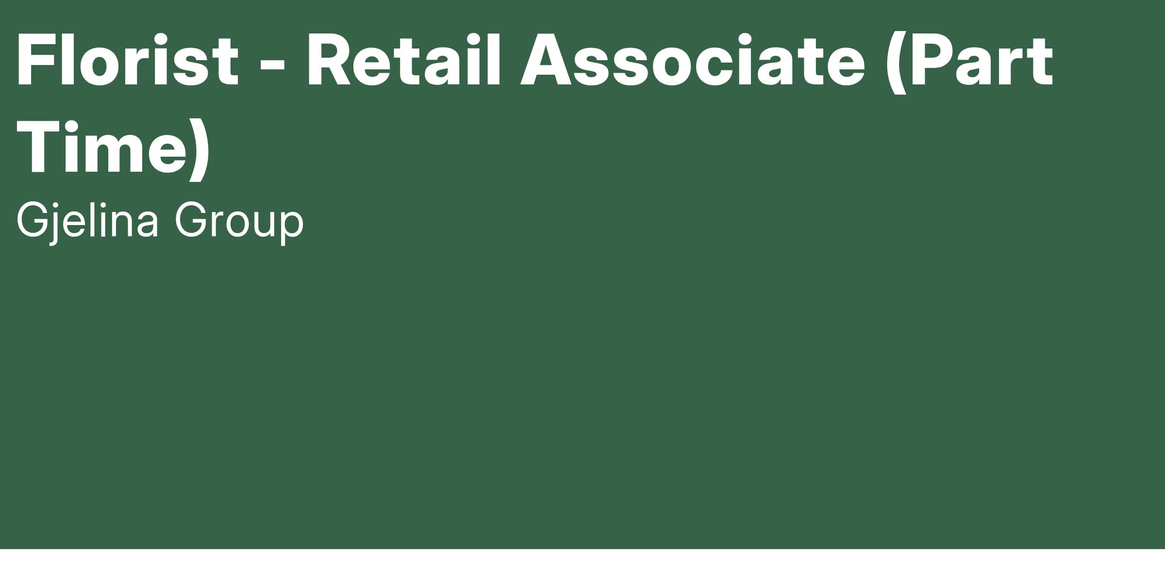 Florist - Retail Associate (Part Time)