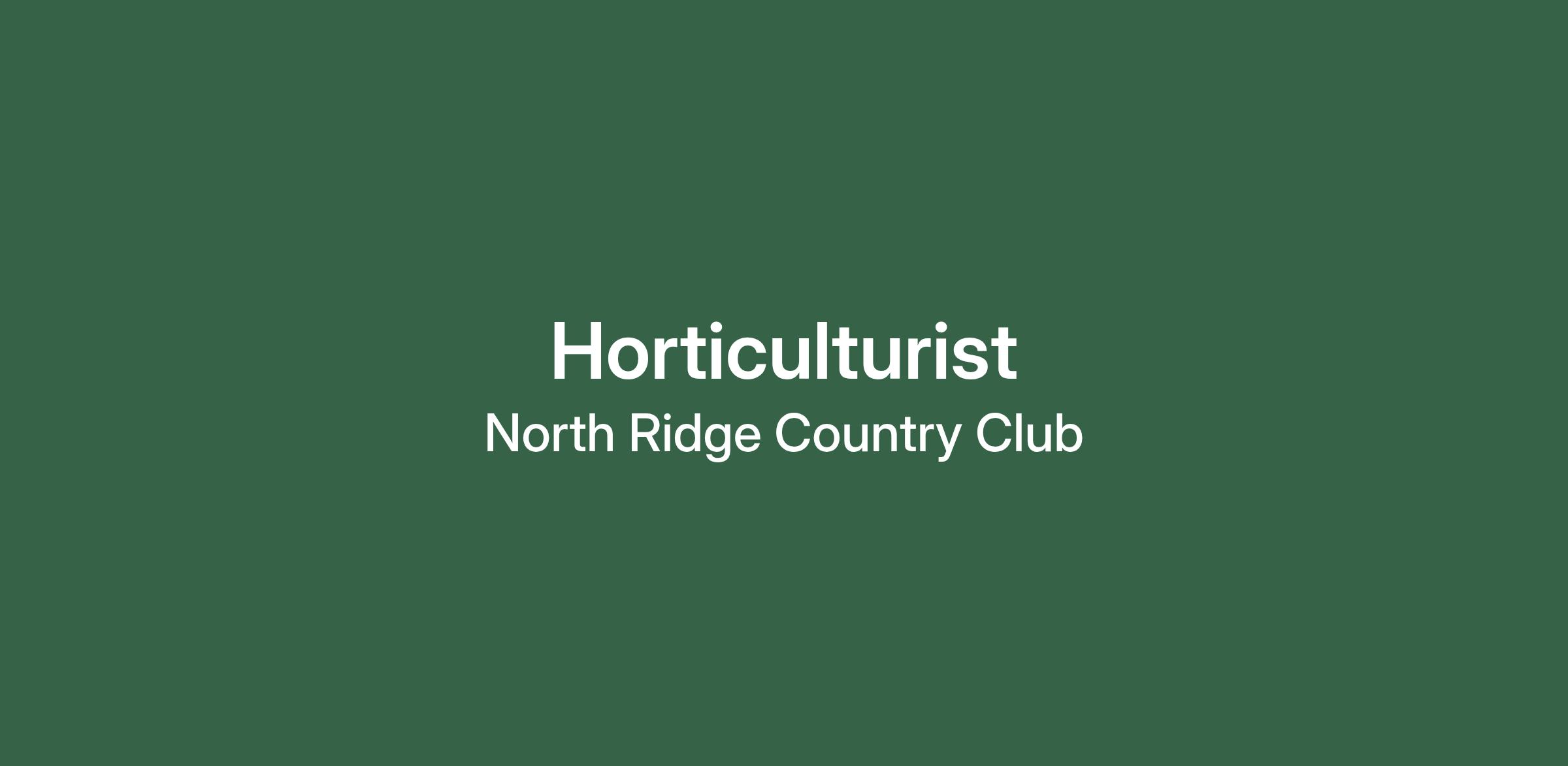 North Ridge Country Club is seeking to add a Horticulturist to our Agronomy Team. This position will be key in elevating the beauty and presentation of Club grounds and golf course corridors through cultivating, maintaining, and improving the health and aesthetic of the plants and landscape. Working with the Director of Golf Course Maintenance, Superintendents, and Clubhouse Grounds Manager, the Horticulturist will assist with our objective to provide our members with an environment of world-class golf and Club culture.