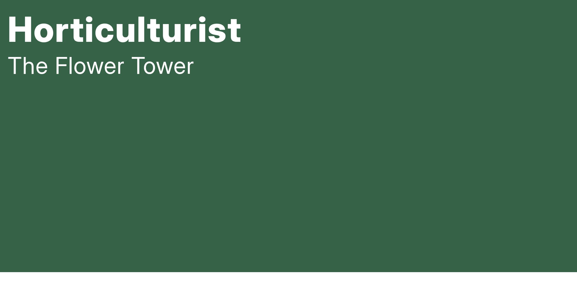 Position Overview: As a Horticulturist at The Flower Tower, you'll be responsible for overseeing the care, cultivation, and maintenance of our diverse collection of plants. From selecting and sourcing plant varieties to designing garden layouts and providing expert advice, you'll play a key role in creating an environment where plants thrive and flourish.