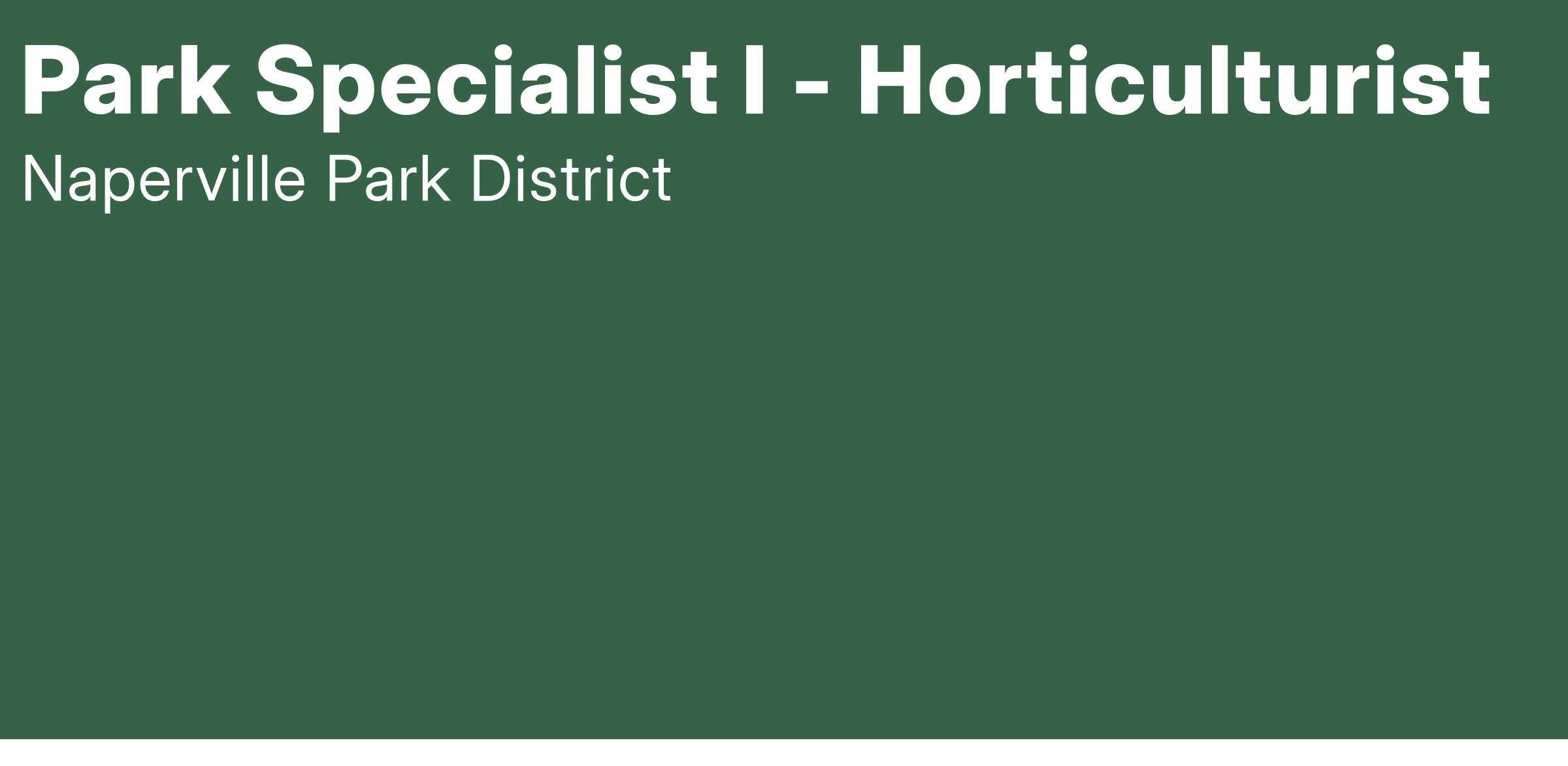 The Naperville Park District is looking for a qualified candidate to join our park maintenance department as a Park Specialist I. This is an excellent opportunity for an experienced professional in the area of horticulture, general landscape or park maintenance to utilize their skills in a team environment to make a positive impact on the community.